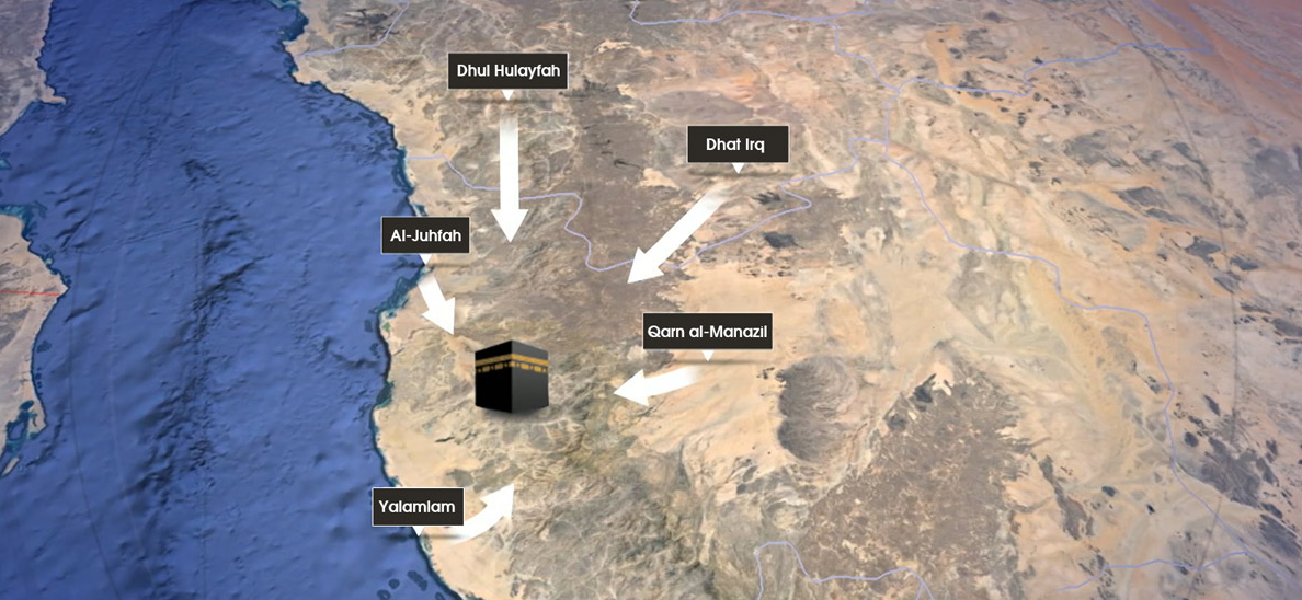 Prophet Muhammad (Peace be upon him) assigned five Meeqat points for pilgrims travelling from various directions.